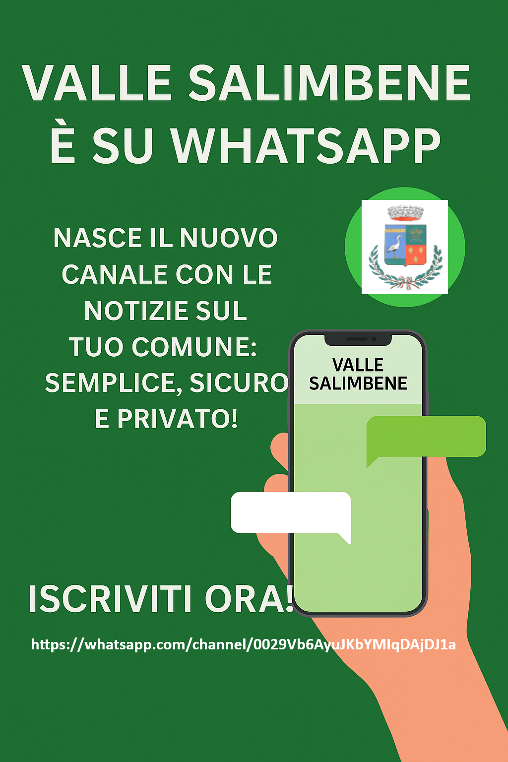 Descrizione Nasce il canale per restare sempre aggiornato sul tuo comune Allegati Link Canale Whatsapp (Apre il link in una nuova scheda) A cura di Uffici Anagrafe, Segreteria, Affari Generali Ultimo aggiornamento pagina: 04/07/2025 09:54:51