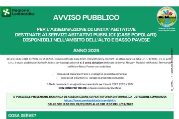 Avviso Pubblico per l'assegnazione di alloggi destinati ai servizi abitativi pubblici disponibili nell'ambito dell'alto e basso pavese