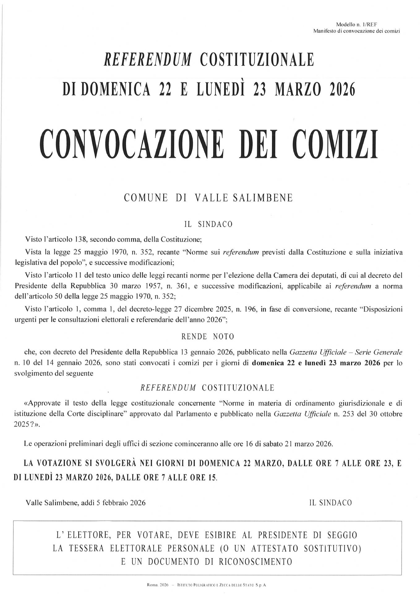 Descrizione convocazione dei comizi A cura di Uffici Anagrafe, Segreteria, Affari Generali Ultimo aggiornamento pagina: 05/02/2026 08:06:18