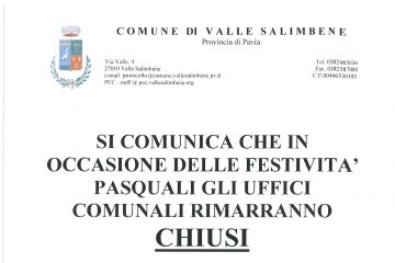 Si comunica che in occasione delle festività Pasquali gli uffici comunali rimarranno chiusi Sabato 19/04/2025