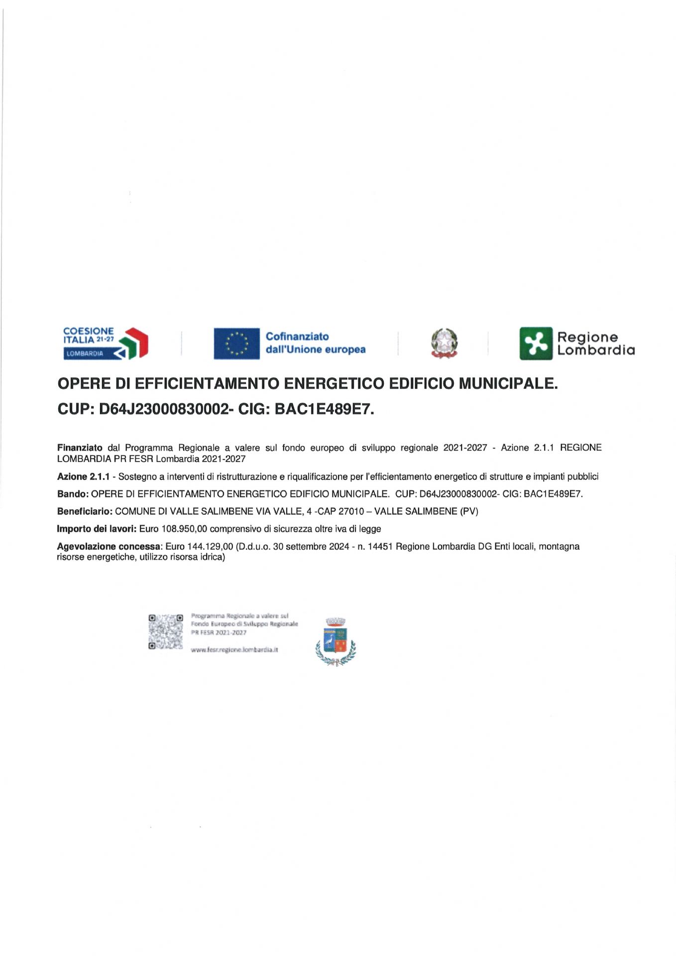 Descrizione opere di efficientamento energetico edificio municipale A cura di Uffici Anagrafe, Segreteria, Affari Generali Ultimo aggiornamento pagina: 31/03/2026 15:43:19