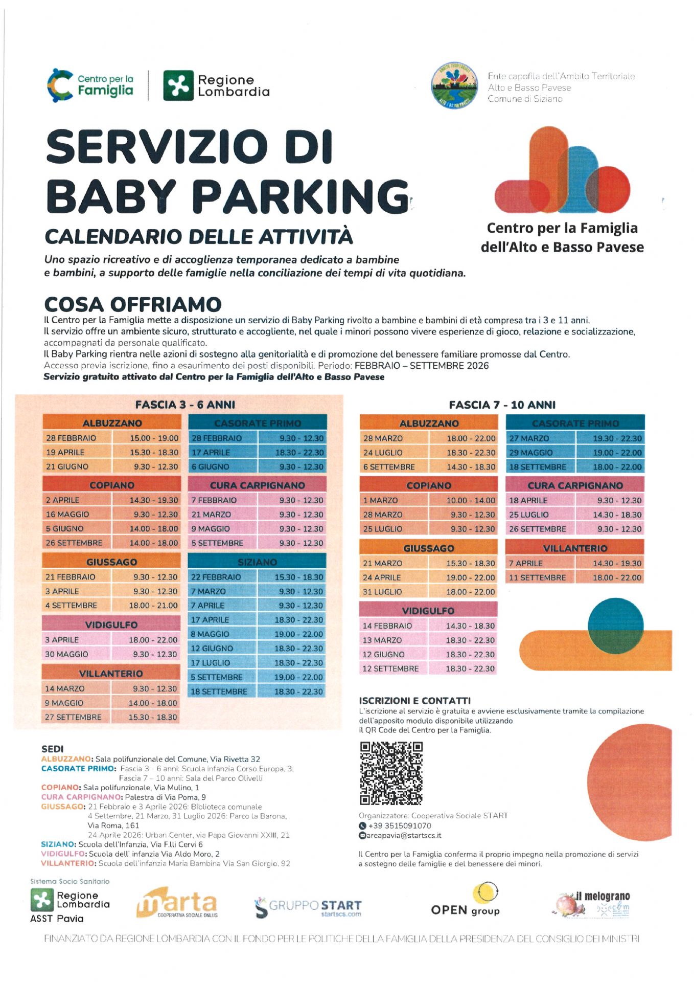 Il Centro per la Famiglia mette a disposizione un servizio di Baby Parking rivolto a bambine e bambini di età compresa tra i 3 e 11 anni.